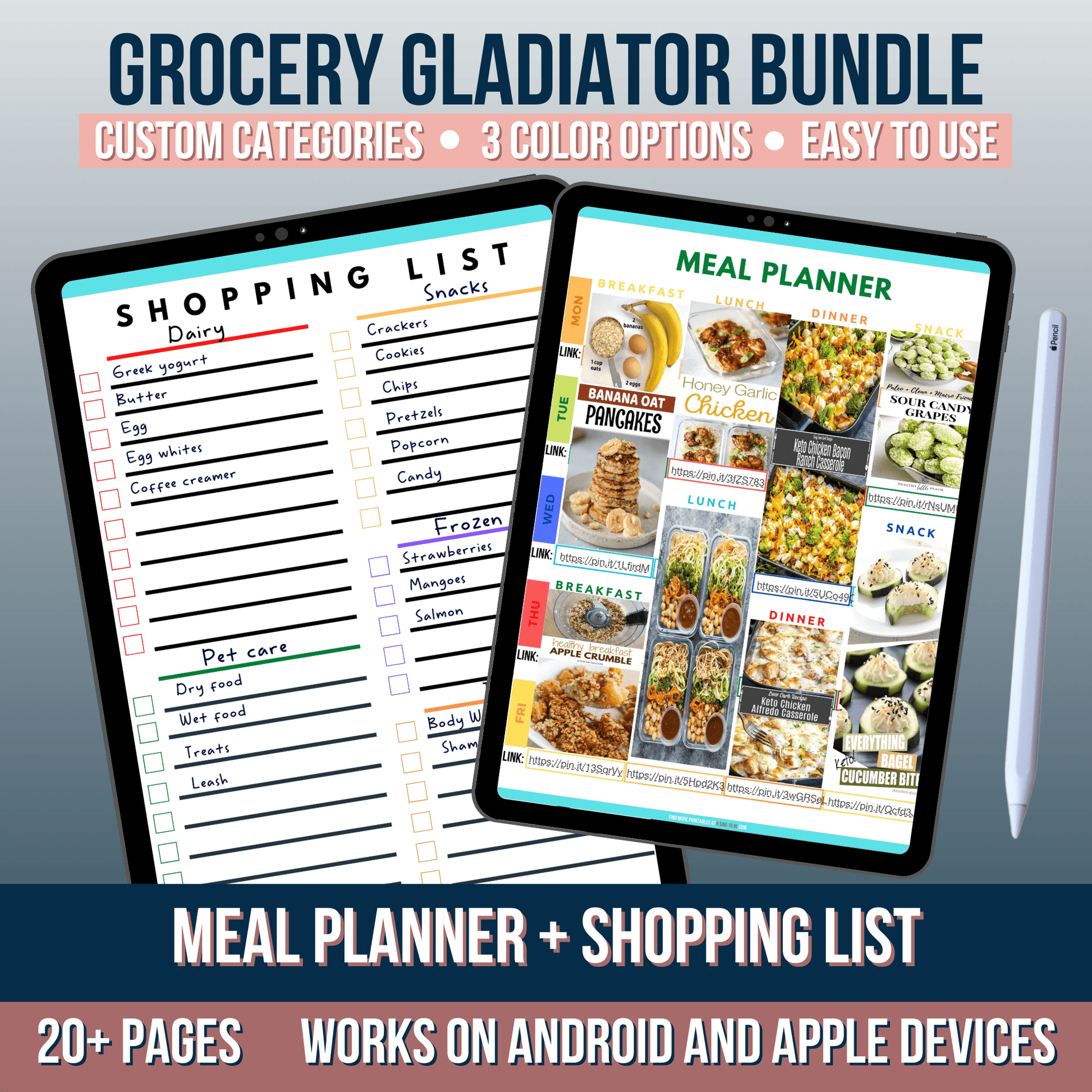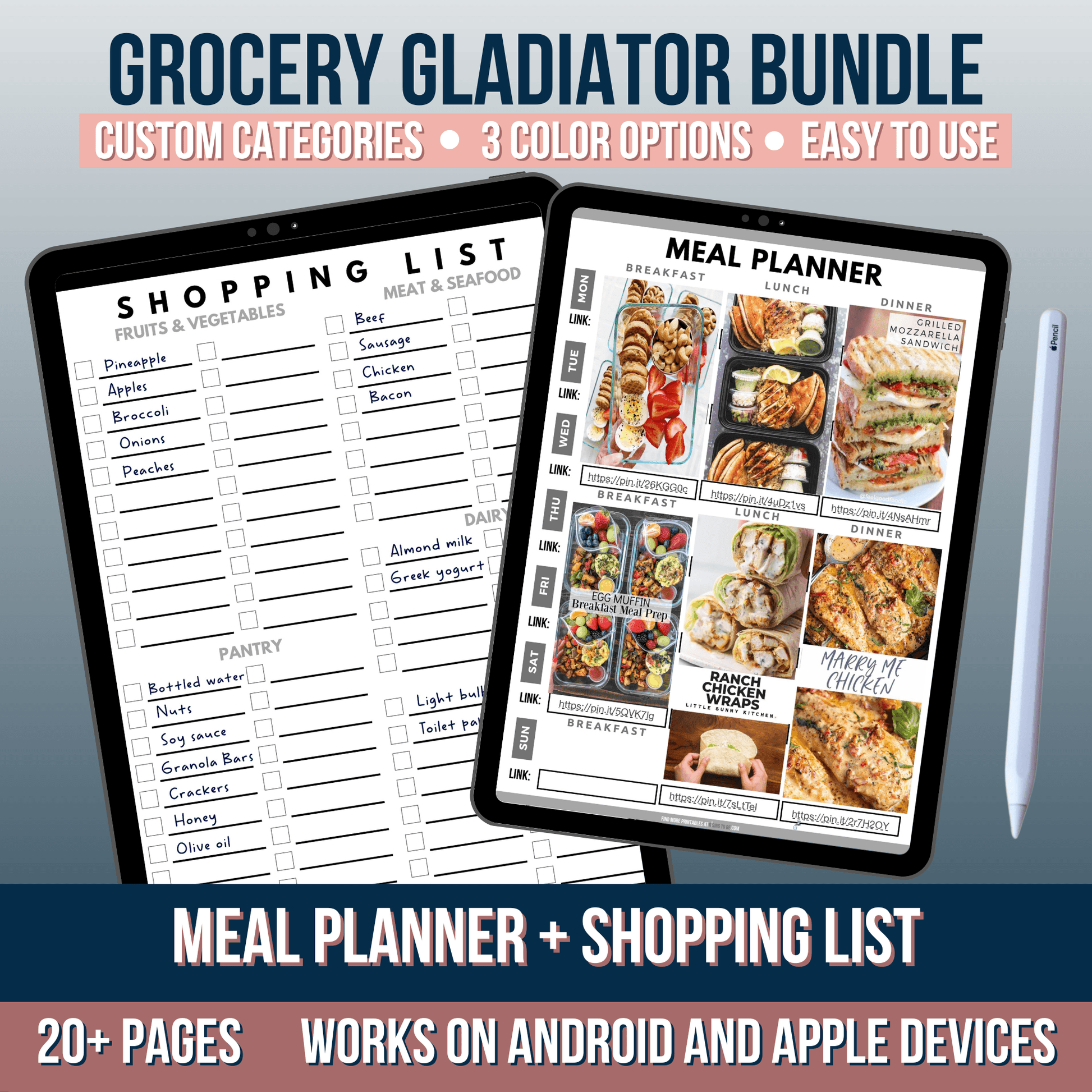 Planning your grocery list doesn’t have to be a chore. The Grocery Gladiator Bundle helps you plan out your meals ahead of time, keep track of what you’re eating and reduce the amount of money you spend on takeout by planning your meals in advance. Set your household up for success and start planning ahead today!