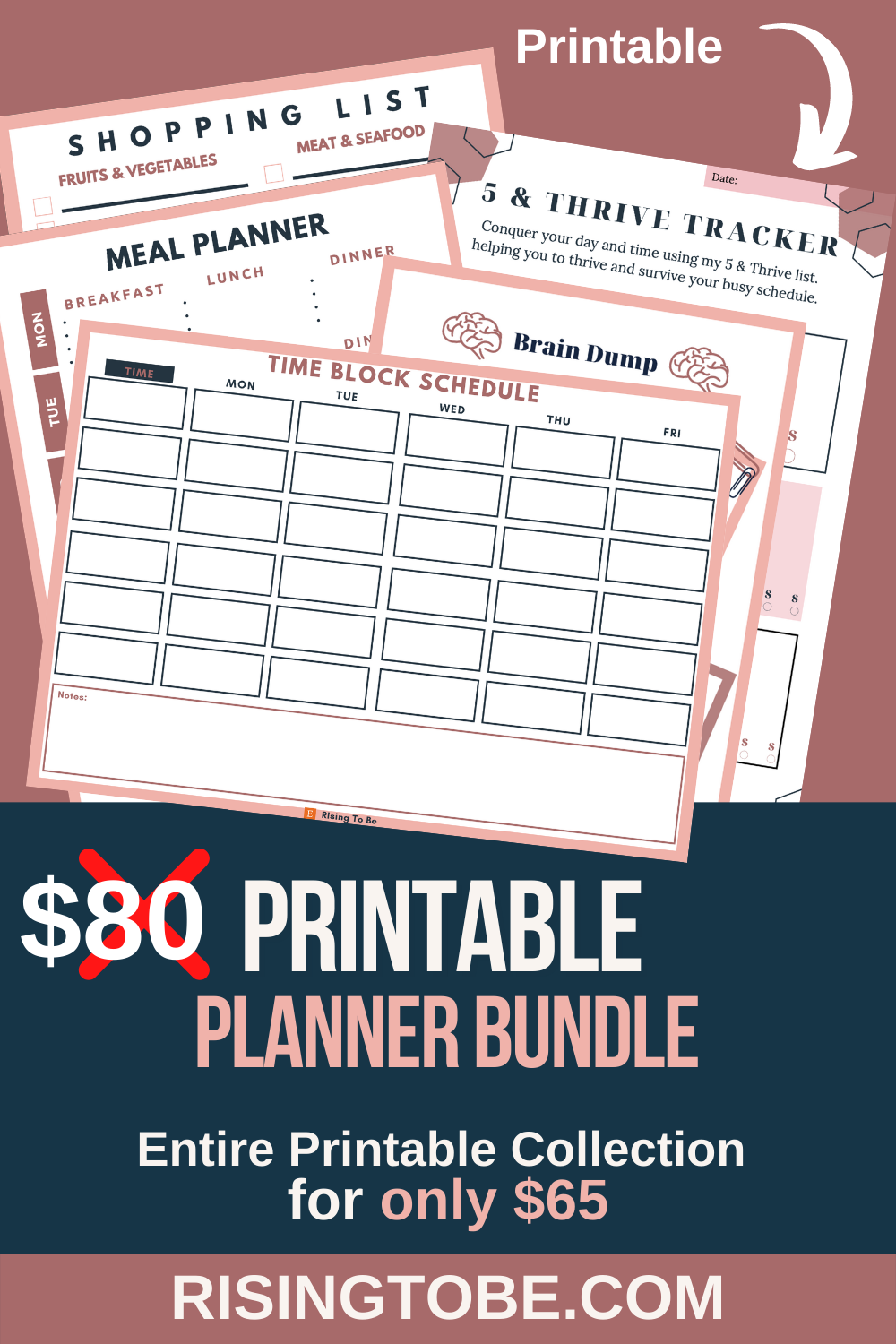 Save big with the Rising To Be - Customizable Printable Planner Bundle, get more 15+ pages for a lower price. It includes all of the single printables listed on my shop with several different versions.